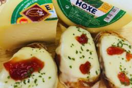 Pon un anaco de queixo HOXE encima de cada torrada.